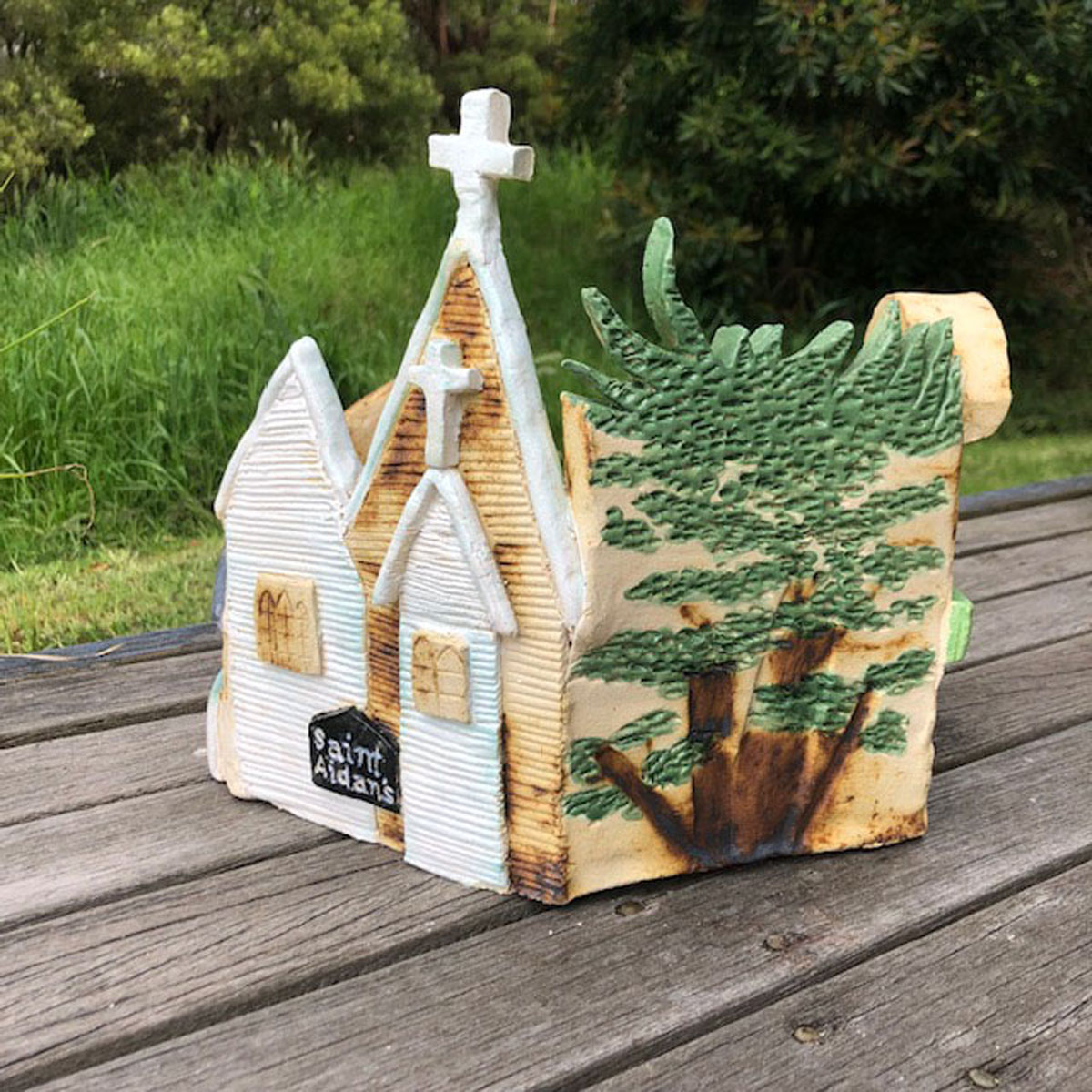 Anne loves the Otways and the villages which form its heart. Her series of pots pays homage to the iconic buildings in the villages.