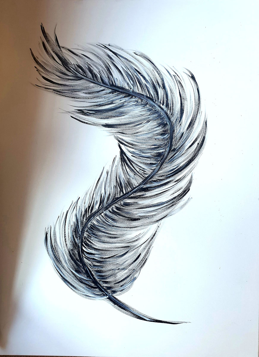 Karla Devlin is based in Ballarat, but spends as much time as possible at the beach. She works mainly in pencil, ink and acrylic on canvas and paper. At the moment she is drawn to exploring a monochromatic pallet. Karla is passionate about the natural world; she is inspired by the ocean and all things one finds on the beach, including feathers, shells and the occasional piece of sea glass. Feathers make a surprisingly frequent appearance in her work, and symbols that represent strength and growth, as well as hope, freedom and our connection to the spirt realm. These ideas resonate in her work and reflect her connection to nature, her ability to see the potential for growth in each new experience and her belief in the importance of calm and grounding meditation. Karla is a primary school teacher during the working week, generously shares her work with her students, families and friends and is aspiring to offer her first solo exhibition in 2022.