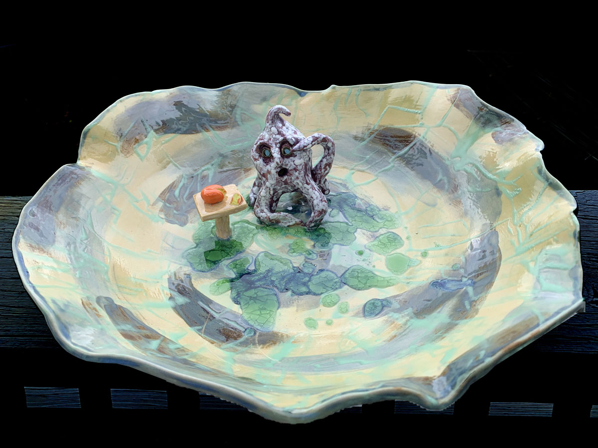 Born in the UK, emigrated to Melbourne in 2004 and then relocated to Apollo bay in 2007, Became interested in pottery a few years ago and have never looked back. I love to create whether it be sculpting animals to creating bird baths and bowls and often letting my imagination run wild and just seeing what can develop out of a piece of clay from the practical to the weird and sometimes wonderful.