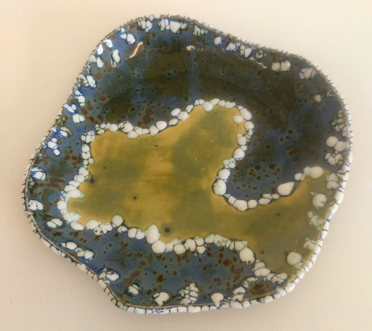 Beautiful glazes and shape inspired this dish! I enjoyed mixing up the glazes and am very happy with the result.