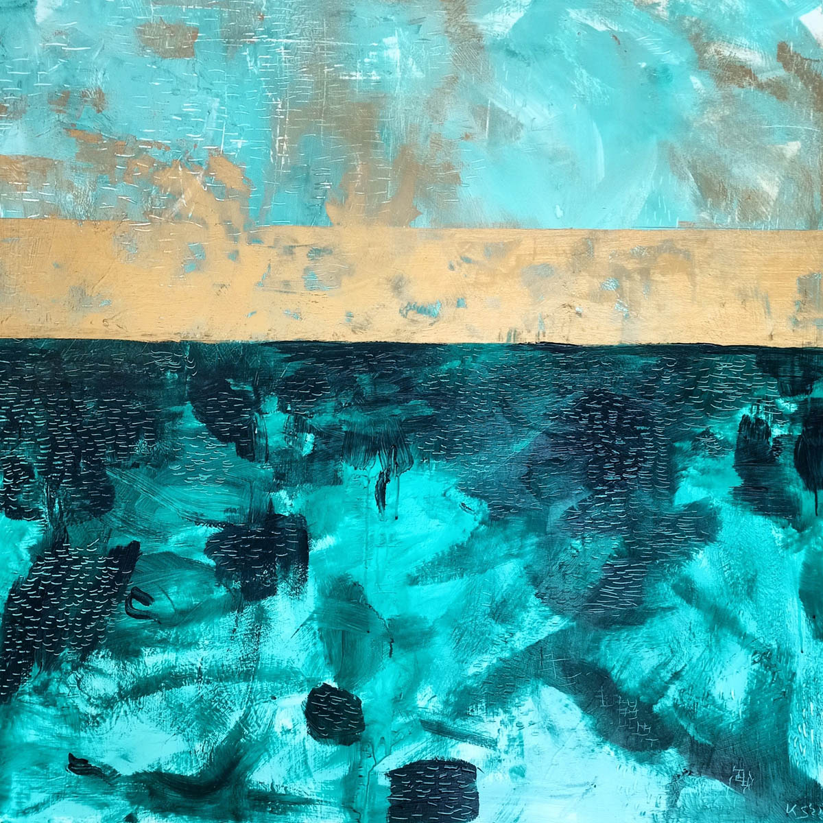 Abstract work in acrylic paint on board. Made with Hydrocryl high quality, environmentally friendly acrylic paints and Matisse metallic gold paint.