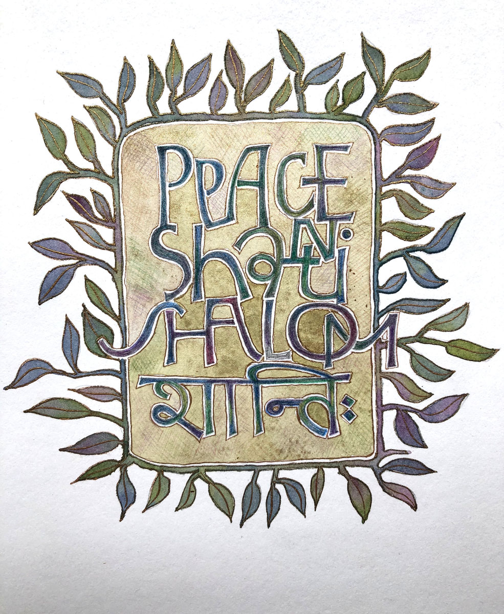 Four words for Peace, created in the tranquil quietude of my straw bale studio during the longer COVID lockdown period in 2020.