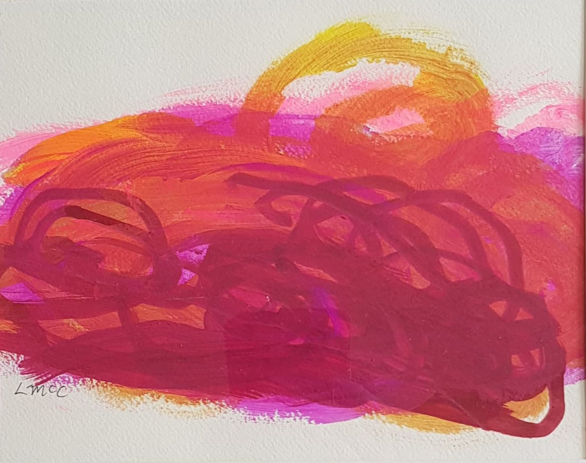 Lindy McCann has been a lifelong artist, loving vivid colour and natural inspiration to paint. Lindy suffered a severe stroke 2.5 years ago, and continues on her recovery journey today. Even though her physical body is now severely restricted, Lindy’s creativity and inner artist has remained: Nevertheless, she persists. Whilst painting has had to evolve for Lindy, she enjoys the familiar slide of the paint on the page; the bursts of bright colours and the creation of abstract shapes and landscapes. The paintings created by Lindy hold a natural beauty within them, a persistent and emotional vibrancy. Lindy draws much inspiration from views from her house: from Marengo looking over to Apollo Bay hills, their everlasting ‘hug’ over the small township, beach and bay. Lindy draws inspiration from her love of her family. She lives at home with her husband Mark, their dog Coco, cat Jasper and parrot Inka. Lindy is assisted to create weekly via art therapy from local artist Danni Sandford.