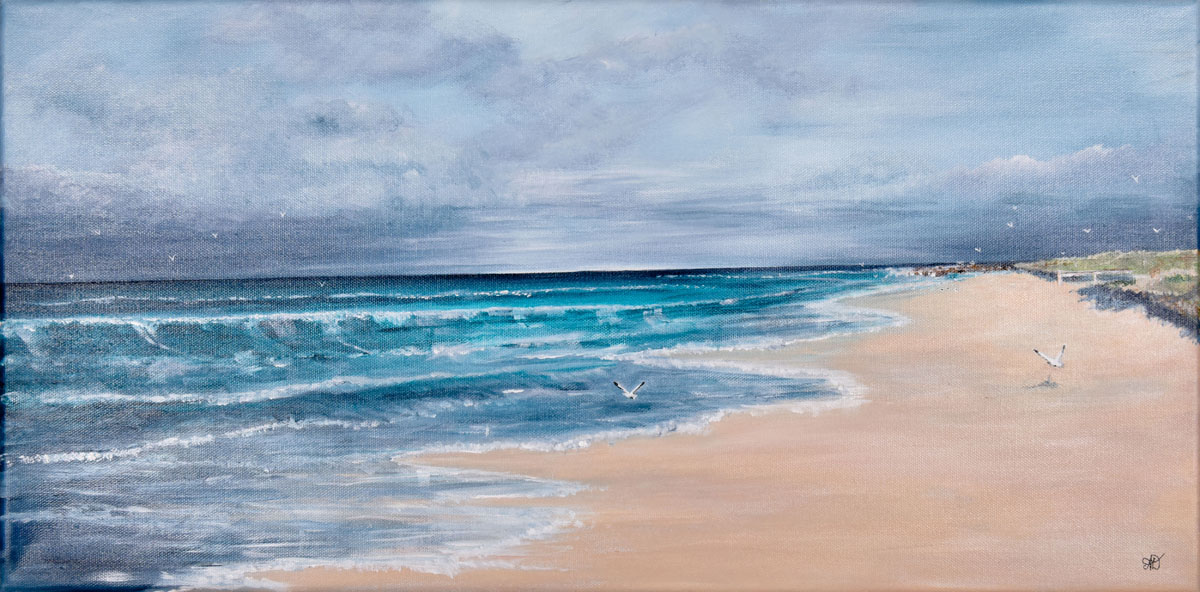 A long stretch of beach, just waiting to be walked on. Crisp waves, a stormy sky, and warm sands are calling…