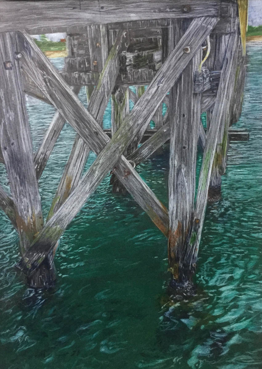 I have tried to capture the depth and light of the water as it moved beneath the Queenscliff Boat Shed, I got the idea after a four hours of unsuccessful fishing .